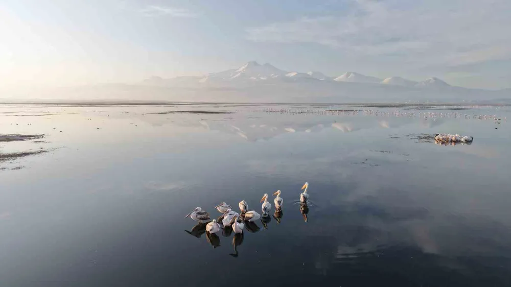 BAHARIN GELMESİYLE BİRLİKTE KAYSERİ'YE ADIM ATAN İLK PELİKAN GRUBU DRONLA GÖRÜNTÜLENDİ.BAHARIN GELMESİYLE BİRLİKTE KAYSERİ'YE ADIM ATAN İLK PELİKAN GRUBU DRONLA GÖRÜNTÜLENDİ.