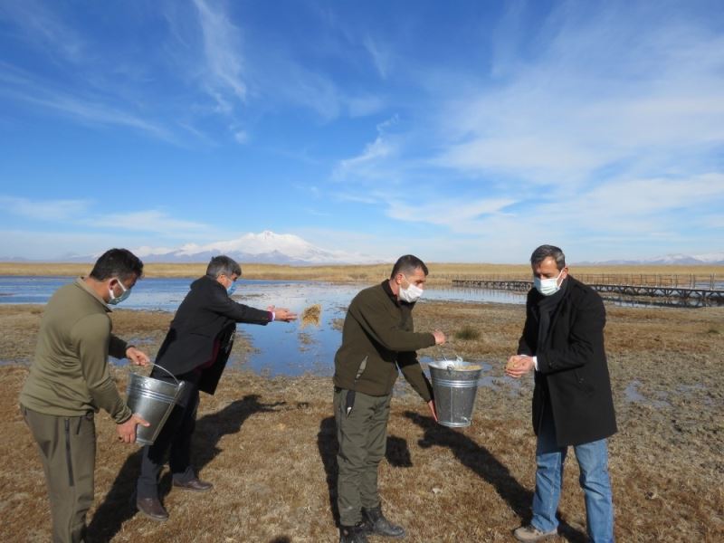 Kayseri Doğa Koruma ve Milli Park Şubesi yetkilileri, "Sulak alanlar; içerisinde barındırdığı canlılara beslenme, konaklama ve ev sahipliği yaparken, suyu filtre ederek bizlere de temiz su sağlar. Ayrıcı suyun hızını kesip taşkınları da ciddi ölçüde azaltarak doğal yaşama göz ardı edilemeyecek katkı sağlamaktadırlar. Bu nedenle sulak alanlar yaşamın bir parçası değil kendisidir. Sadece ülkemizin değil dünyanın da en önemli sulak alanlarında bir tanesi olan, tatlı ve tuzlu su ekosistemlerini bir arada bulundurması sebebiyle çok ender olan Sultan Sazlığı Milli Parkı’nda yemleme çalışmasına ekiplerimizin yanısıra nişan merasimleri için alan gelen çiçeği burnunda yeni eş adayları da katılarak yaban hayvanları için yemleme yaptılar" ifadesinde bulundu.
