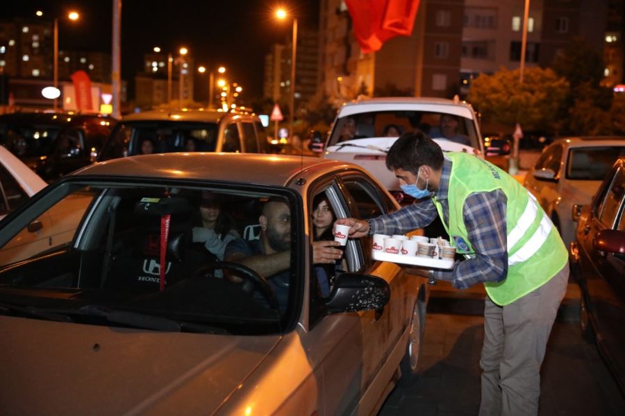 Filmlerin seslerinin kapalı devre radyo sistemi ile dinlenebildiği etkinlikte araçlarından inmelerine izin verilmeyen vatandaşlara Melikgazi Belediyesi tarafından patlamış mısır, çay ve dondurma ikramında bulunuldu.
