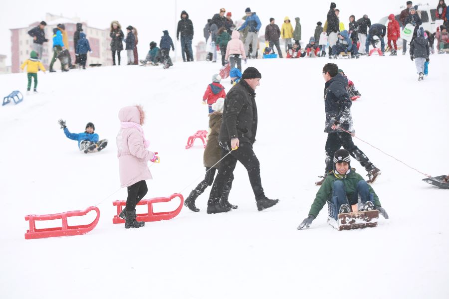 Talas Belediyesi’nin kızak alanına dönüştürdüğü tepe, kar yağışının başlamasıyla yeniden ilgi odağı oldu. Doğal kayak pistine dönüşen tepede büyük küçük herkes doyasıya eğlendi.