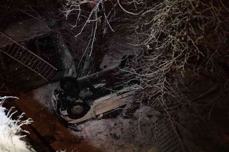 Kayseri’nin Melikgazi ilçesinde 5 metrelik bahçeye uçan otomobil sürücüsü kazayı yara almadan atlatırken, ters dönen araçtan kendi imkanlarıyla çıkararak yardım istedi.