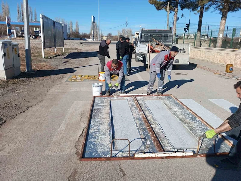 Bünyan Belediyesi ekiplerince eğitim öğretime verilen ara tatilin ardından öğrencilerin ve vatandaşların güvenliğini artırmak amacıyla okul çevresindeki yaya geçitleri yenileniyor.