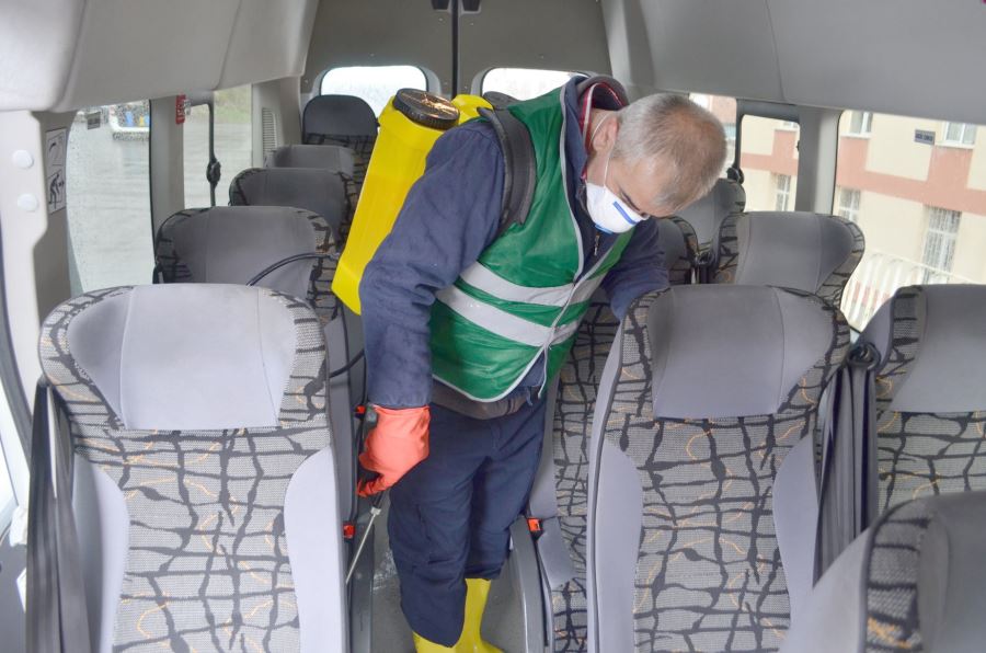 Bünyan'da toplu taşıma araçları dezenfekte edildi