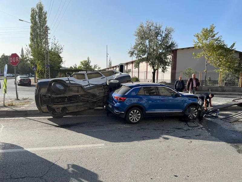 Kayseri’nin Melikgazi ilçesinde meydana gelen kazada çarpışan iki otomobilden biri yan yattı. Güvenlik kamerasına yansıyan kazada 2 kişi yaralandı.