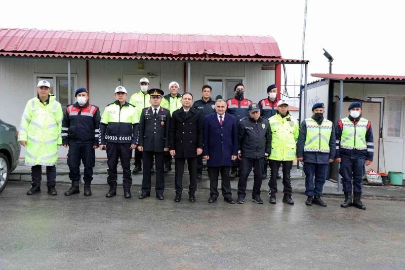 Develi Kaymakamı Sinan Aslan, Belediye Başkanı Mehmet Cabbar, İlçe Garnizon Komutanı Jandarma Üsteğmen Gürcan Büyükkömürcü ve İlçe Emniyet Müdürü Salif Öztürk ile birlikte Erciyes yolu üzerindeki güvenlik kontrol noktasını ziyaret etti.
