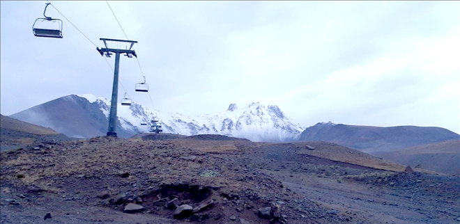 Erciyes Dağı´nda 3917 metre ile 3400 metre arasında mevsimin ilk karı yağdı ve Erciyes Dağı beyaza büründü. (İHA) eslendirdi. (İHA)