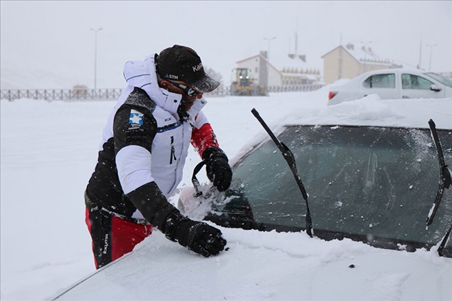 Kayak Antrenörü Veysel Değirmenci de, kar yağışının başlamasıyla beraber çok mutlu olduklarını söyleyerek, karla oynadı.