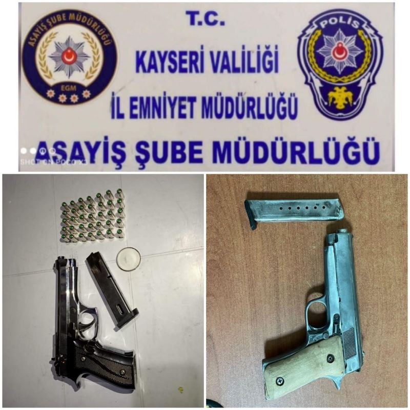 Kayseri İl Emniyet Müdürlüğü Asayiş Şube Müdürlüğü Yankesicilik ve Dolandırıcılık Büro Amirliğine bağlı güven timlerince yapılan çalışmalarda; 2 adet ruhsatsız tabanca ele geçirildi.