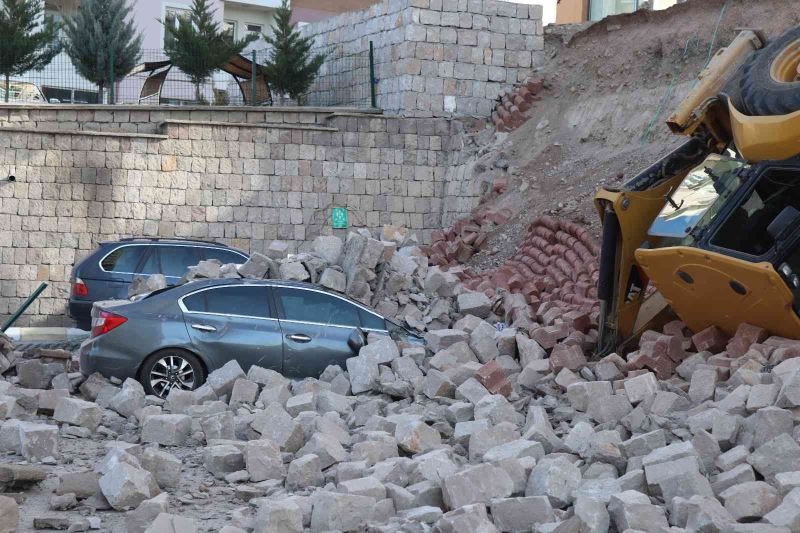 Kayseri’nin Talas ilçesinde, istinat duvarının çökmesi sonucu iş makinesi yaklaşık 5 metre aşağı düştü. İş makinesi operatörü kendi imkanlarıyla devrilen araçtan çıkarken, duvar altında kalan 4 otomobilde hasar oluştu.