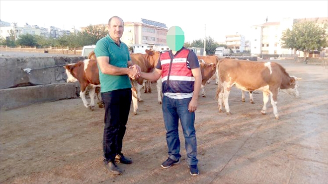 Talas ilçesine bağlı Kuruköprü Mahallesi´nde bir hafta önce Ahmet Kuramaz´a ait 18 büyükbaş hayvan, hırsızlar tarafından yaklaşık 3 kilometre yürütüldükten sonra bir araca bindirilerek çalındı. Yapılan şikayet üzerine İl Jandarma Komutanlığı ekipleri, çalınan hayvanları bulmak için çalışma başlattı. Jandarma ekiplerinin yaptığı çalışmalarda çalınan hayvanların Şanlıurfa´nın Siverek ilçesine götürüldüğü ve burada satıldığı belirlendi. Siverek İlçe Emniyet Müdürlüğü ekipleri ile birlikte yapılan çalışmalar neticesinde hayvan hırsızları tarafından satılan 18 adet büyükbaş hayvan teker teker toplanarak Kayseri´ye getirildi. Hayvanlar, tek geçim kapısı olan hayvanlarının 20 yıllık birikimi olduğunu söyleyen Ahmet Kuramaz´a teslim edildi. Olayla ilgili gözaltına alınan İ.G. hakkında ise işlem başlatıldığı bildirildi. (İHA)