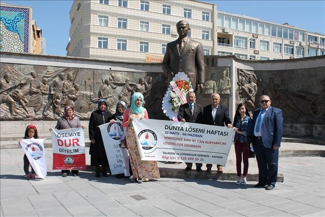 Talasemi ve Lösemililer Derneği üyeleri, Dünya Lösemi Haftası dolayısıyla Cumhuriyet Meydanında çelenk koyma töreni düzenledi. Saygı duruşunda bulunulması ve İstiklal Marşı´nın okunmasının ardından basına açıklamada bulunan Dernek Başkanı Faruk Başdemir, Kayseri´de bilinen 284 lösemi hastası olduğunu, bunun yüzde 70´inin de 6-12 yaş grubu çocuklardan oluştuğunu ifade etti.