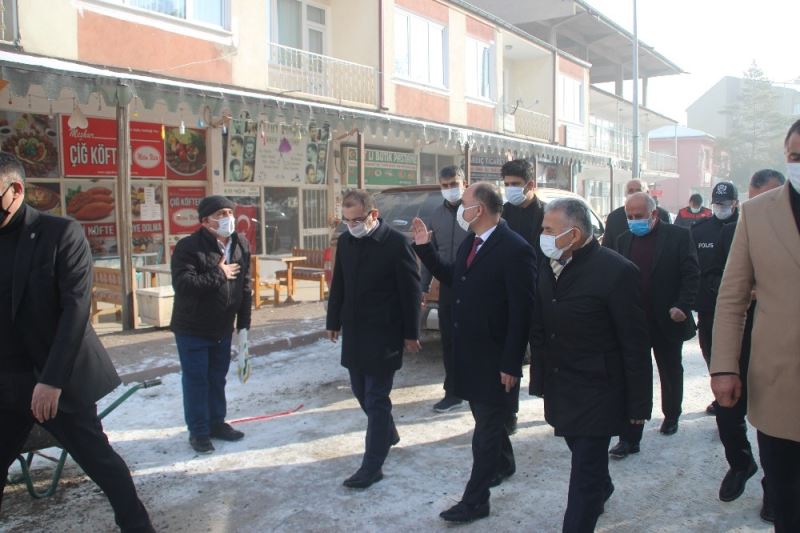 Kayseri Valisi Şehmus Günaydın ve Büyükşehir Belediye Başkanı Memduh Büyükkılıç da sabah saatlerinde ilçeye gelerek incelemelerde bulundu. Burada esnafları ziyaret eden Günaydın ve Büyükkılıç, geçmiş olsun dileklerini iletti.