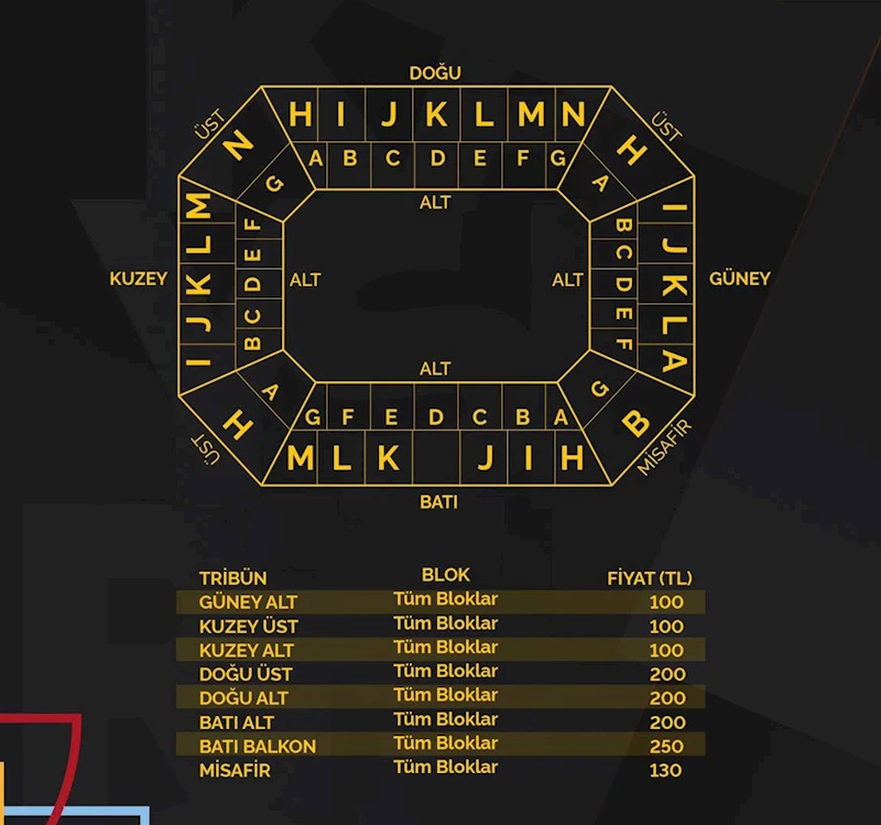 Doğu Alt Tribün bilet fiyatı: 200 TL.