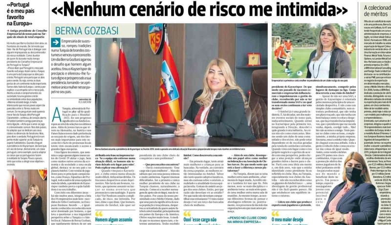 Portekiz’in önde gelen basın kuruluşlarından Abola, Kayserispor ve başkan Berna Gözbaşı’na yer verdi.