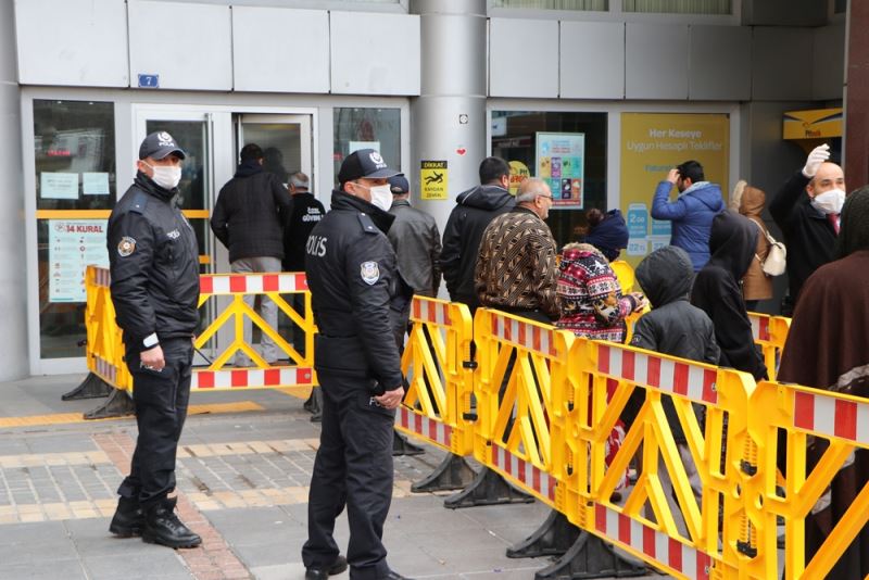 Bu kararın ardından PTT önlerinde yaşanan yoğunluk ortadan kalktı. Cumhuriyet Meydanı’nda bulunan PTT Şubesi önünde de yoğunluğun yaşanmadığı gözlendi. Ayrıca, polis ekipleri yardımı almak için PTT’ye gelen vatandaşları da uyararak, yeniden evlerine gönderdi. Öte yandan, başka bir işlem yapmak için PTT’ye gelen vatandaşlar da, polis ekiplerinin uyarılar sayesinde sosyal mesafe kuralı çerçevesinde sıraya girdi.