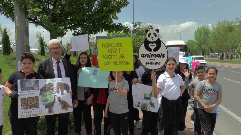 Kayseri Özel Tekden Ortaokulu öğrencileri, çevre kirliliğine karşı farkındalık oluşturmak için yürüyüş yaptı.