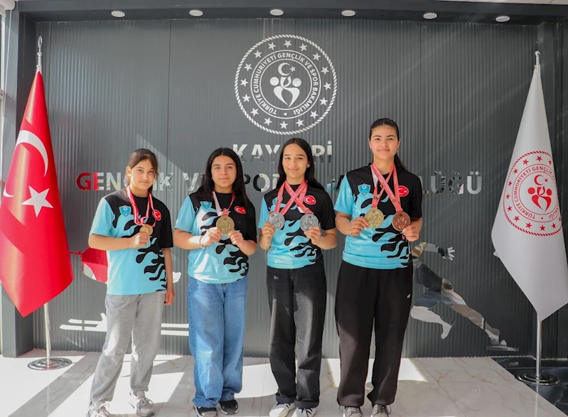 Kayseri’de yapılan Bilek Güreşi Milli Takım Seçmesi ve Türkiye Şampiyonası’nda şampiyon olan Ertuğrul Tacir Oğulları Ortaokulu sporcuları Huri Uçar, Leyla Dulda, Türkiye ikincisi olan Derya Kısa ve Türkiye dördüncüsü olan Gümüş Nur Çarkıt ile Antrenörleri Davut Gökdoğan Kayseri Gençlik ve Spor İl Müdürü Ali İhsan Kabakcı’yı makamında ziyaret ettiler.
