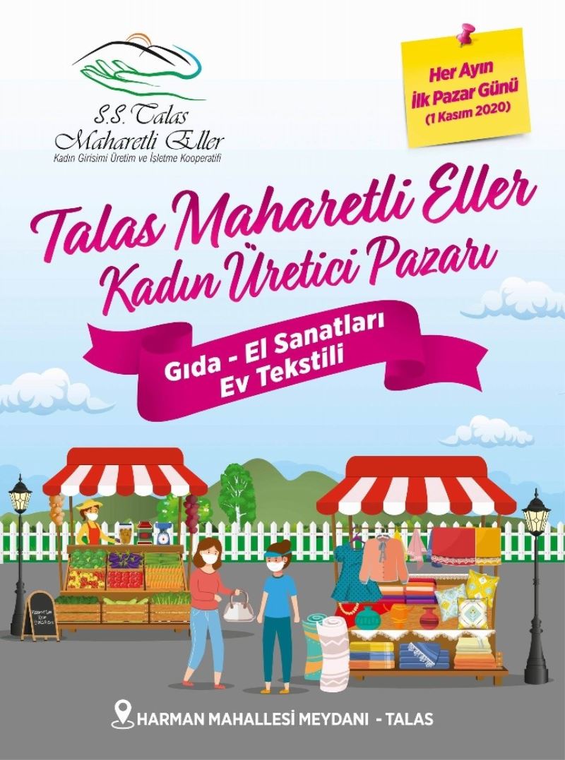 Talas Belediyesi ve Kadın Girişimi Üretimi ve İşletme Kooperatifi iş birliği ile ’Maharetli Eller Kadın Üretici Pazarı’ kuruluyor.